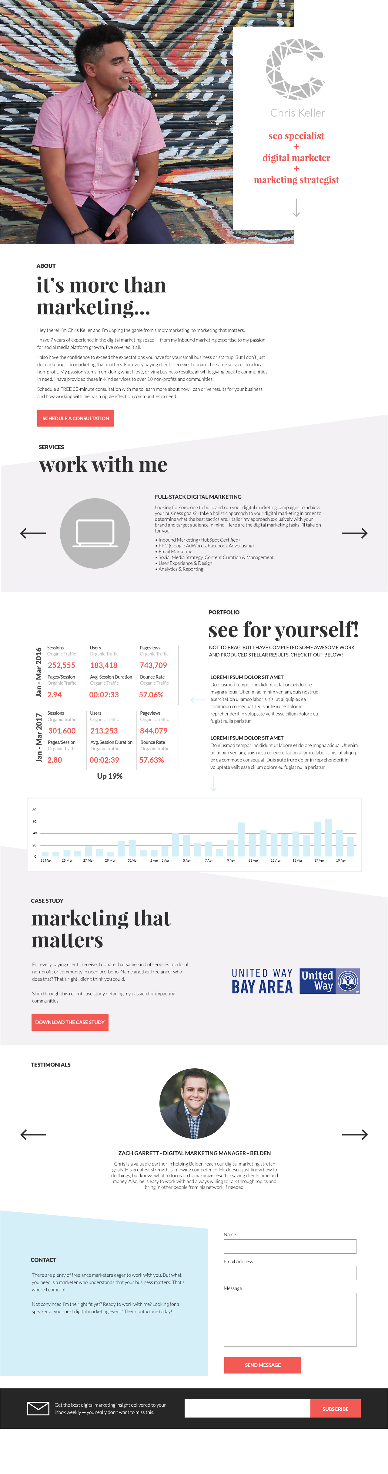 Client: Chris Keller Challenge: To create a homepage mockup for his new business website Role: Designer