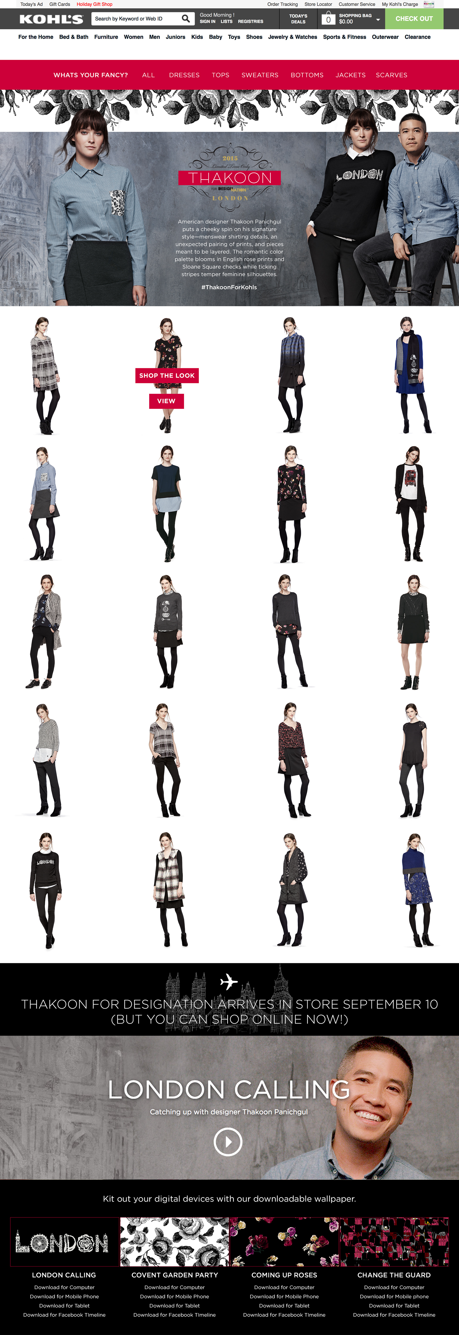 Client: Kohls Challenge: To create a landing page and assets for the Thakoon brand launch. Role: Design and Design Production